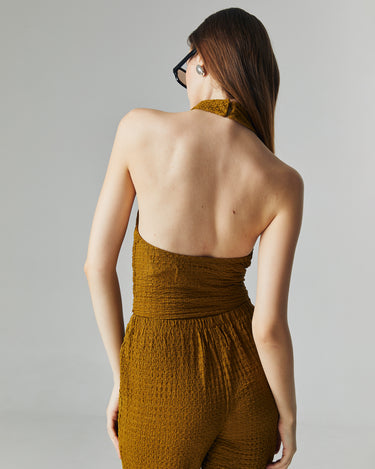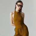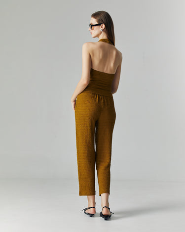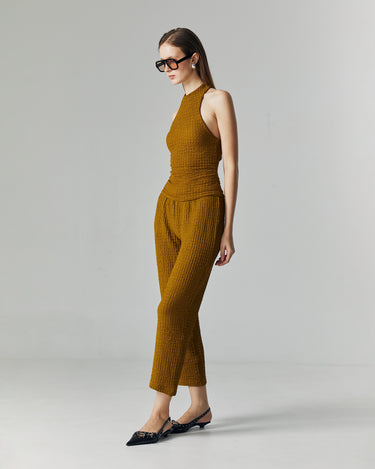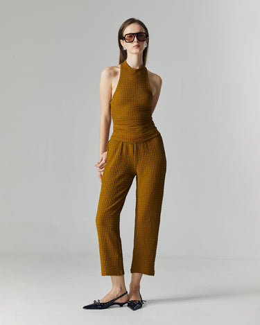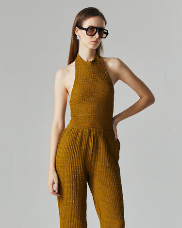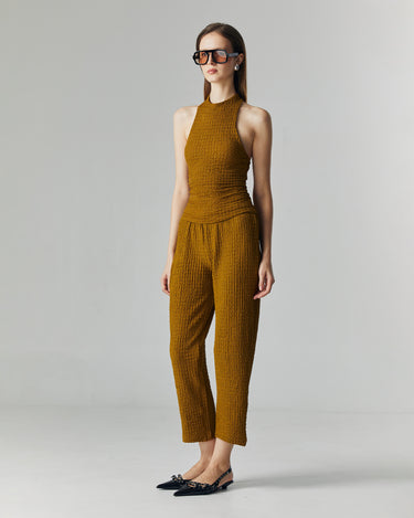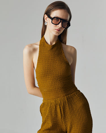 The Nora Knit Set is designed for a sleek yet effortless silhouette. Made from a stretchy crinkle knit fabric, it contours the body comfortably while maintaining a refined structure. The halter neckline adds a touch of modern sophistication, perfect for both casual outings and elevated occasions.
