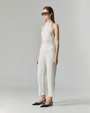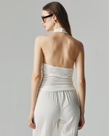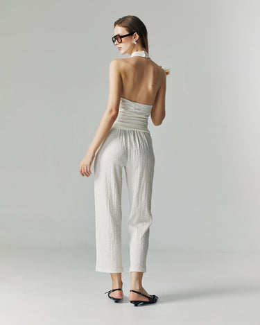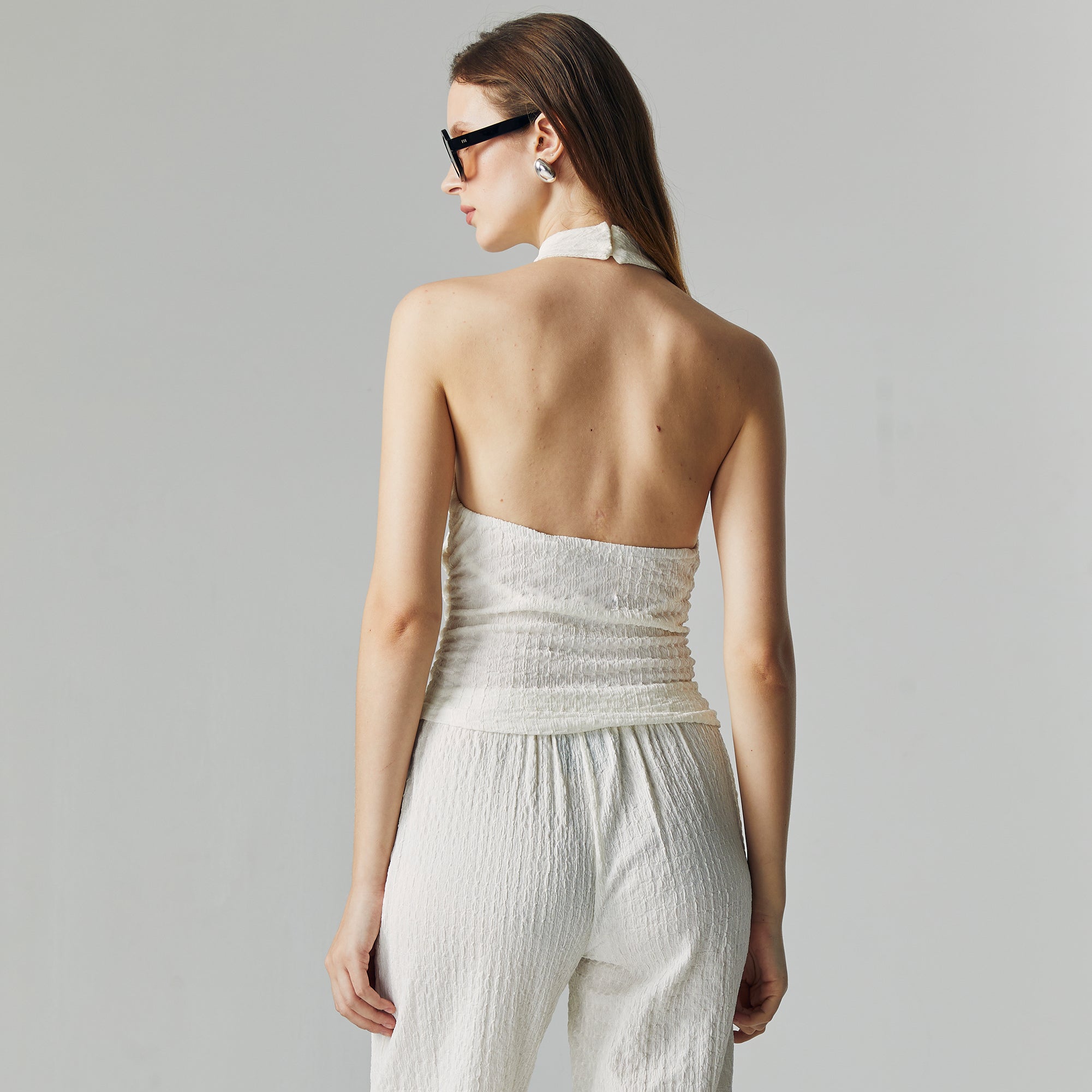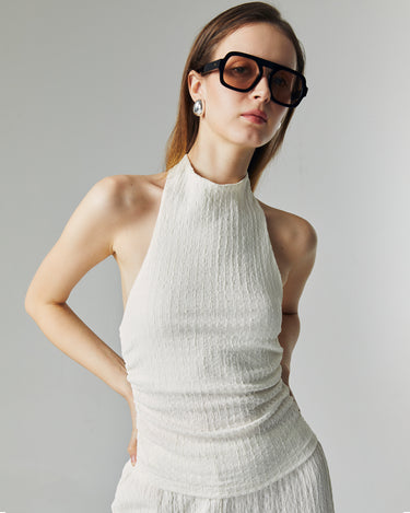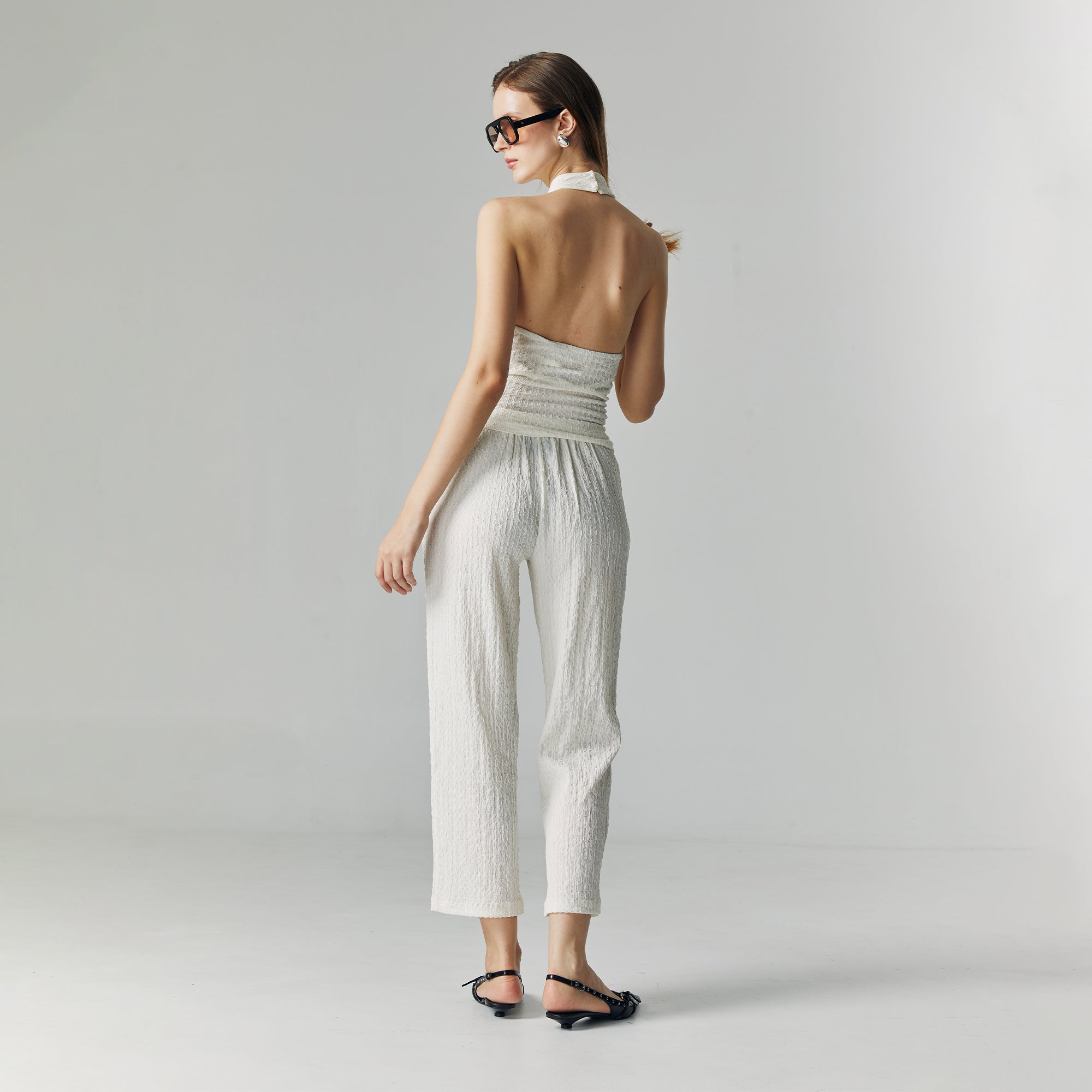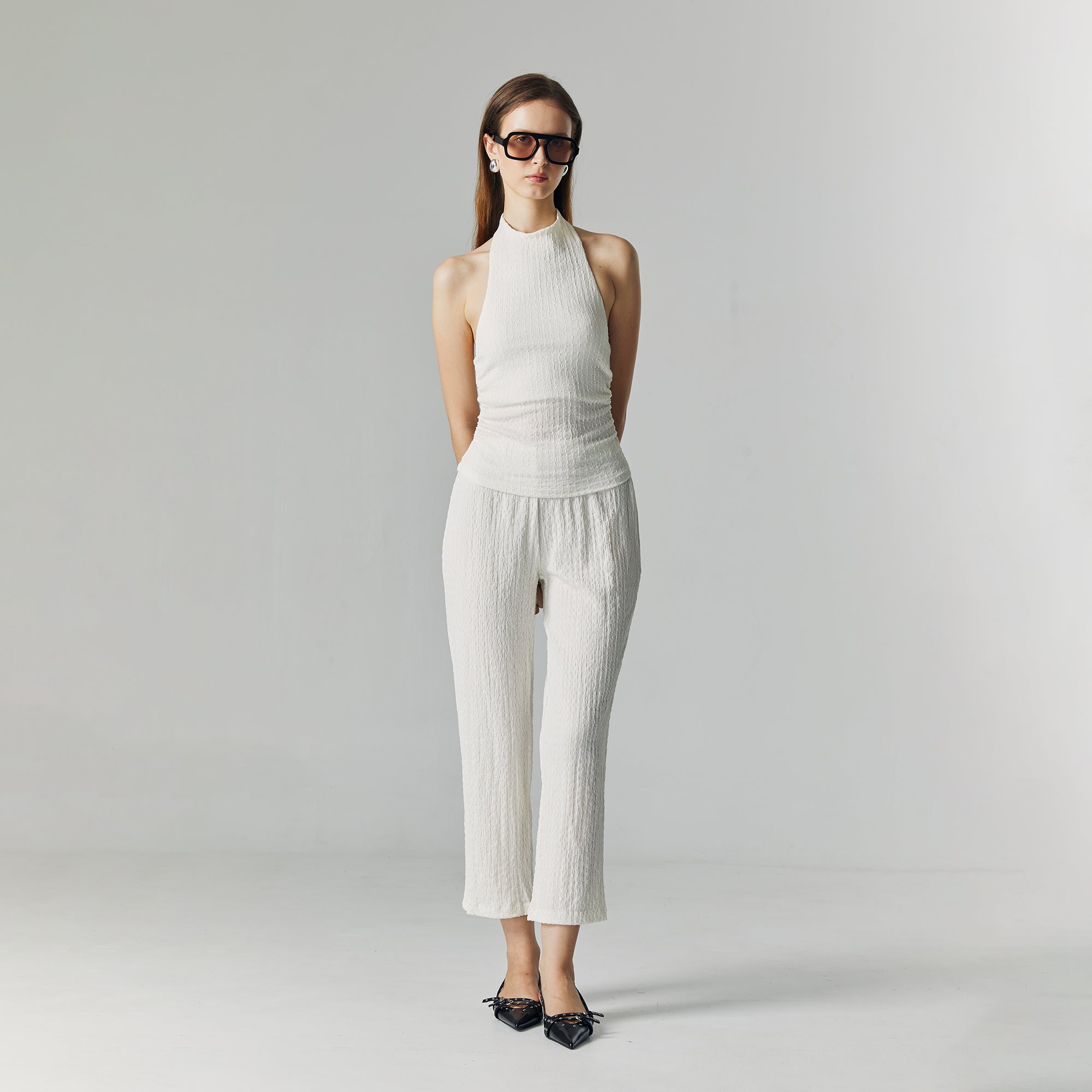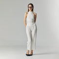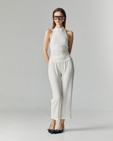 The Nora Knit Set is designed for a sleek yet effortless silhouette. Made from a stretchy crinkle knit fabric, it contours the body comfortably while maintaining a refined structure. The halter neckline adds a touch of modern sophistication, perfect for both casual outings and elevated occasions.