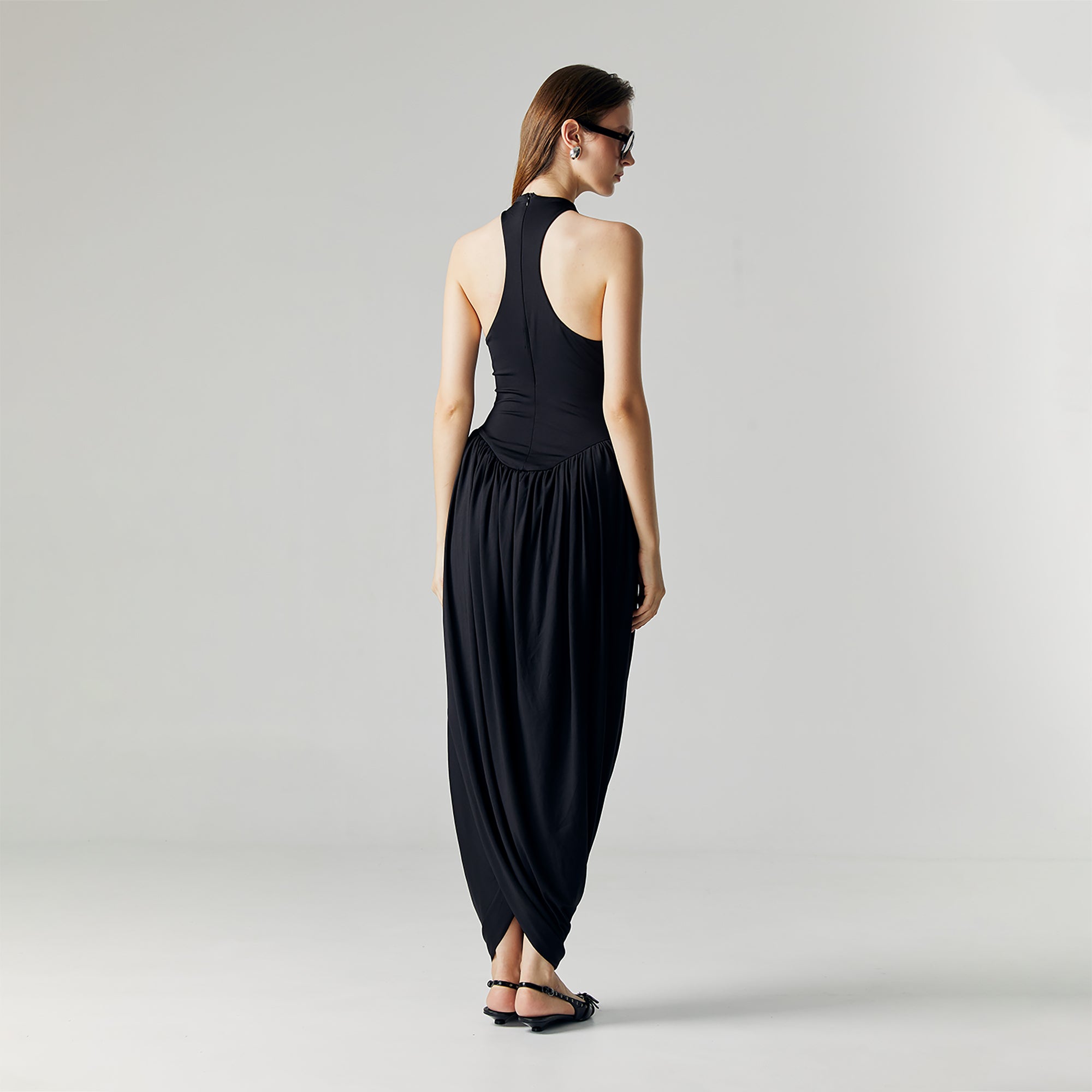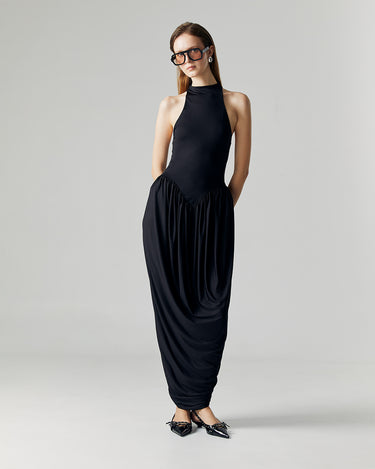 The Celine Draped Maxi Dress embodies refined elegance with a contemporary silhouette. Designed with a halter neckline and soft draping that flows effortlessly, this dress creates a graceful and sophisticated look. Crafted from smooth, lightweight fabric, it offers comfort and movement, perfect for both formal occasions and elevated everyday wear.