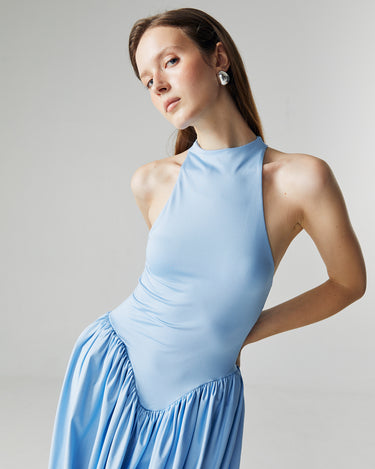 CELINE BLUE DRAPED MAXI DRESS (PRE-ORDER)