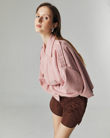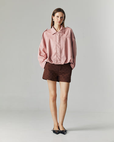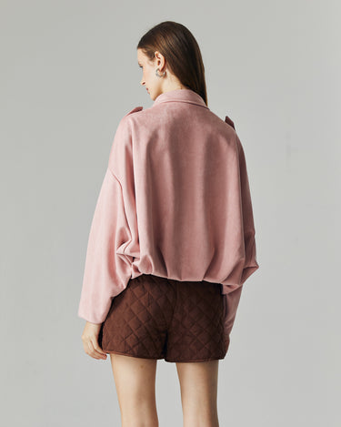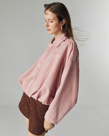 The Qiana Suede Jacket features a relaxed silhouette with structured shoulders and clean tailoring, creating a refined yet effortless look. Crafted from soft suede-like material with windproof and anti-wrinkle properties, it offers both durability and elevated comfort while maintaining a smooth, polished finish. Perfect for layering over a fitted dress or pairing with Xean Quilted Shorts for a contemporary casual look. Complete the outfit with bold hoop earrings or structured accessories for a sophisticated finish.
