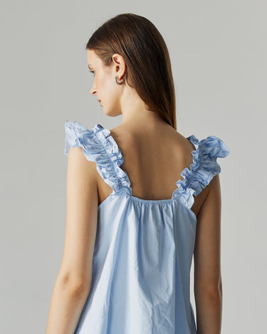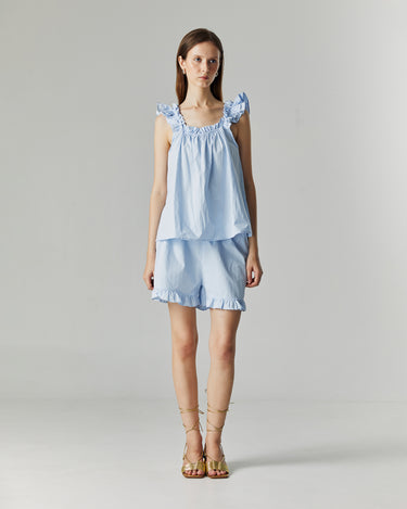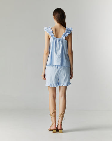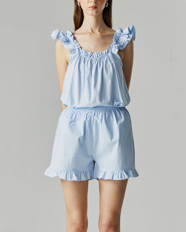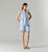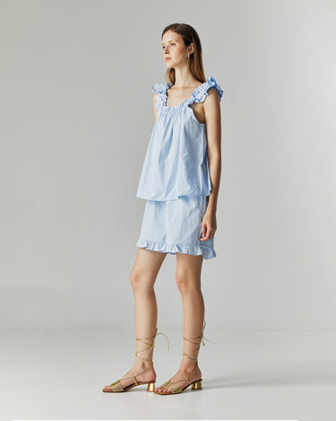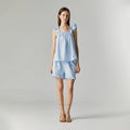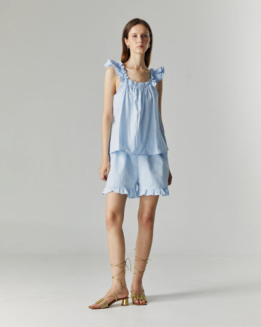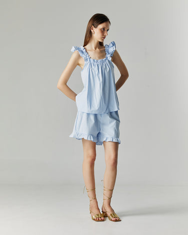 The Amora Ruffle Set features a playful yet elegant look with its ruffled straps and hem detailing. Crafted from lightweight cotton poplin, it offers a relaxed fit that feels soft and breathable against the skin. Perfect for a casual day out or lounging in effortless style.
